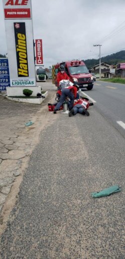 foi avaliado e conduzido para o hospital de Indaial com ferimentos graves.