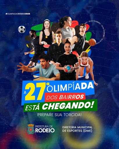 A 27ª Olimpíada dos Bairros ESTÁ CHEGANDO!Um grande evento realizado pela Prefeitura de Rodeio e pela Diretoria Municipal de Esportes (DME), reunindo esporte, integração e muita emoção.