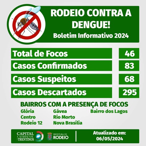 Os focos estão espalhados nos bairros Rio Morto, Nova Brasília, Glória, Centro, Gávea, Rodeio 12 e Bairro dos Lagos.
