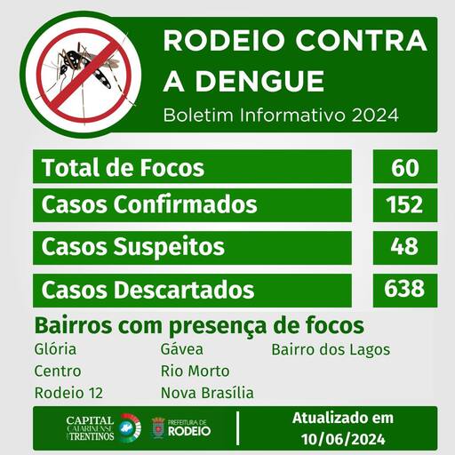 A Secretaria Municipal de Saúde, por meio de sua Vigilância Sanitária e Epidemiológica vem, através deste, informar os dados atualizados da Dengue em nosso município.
