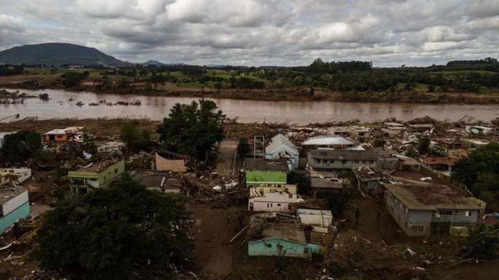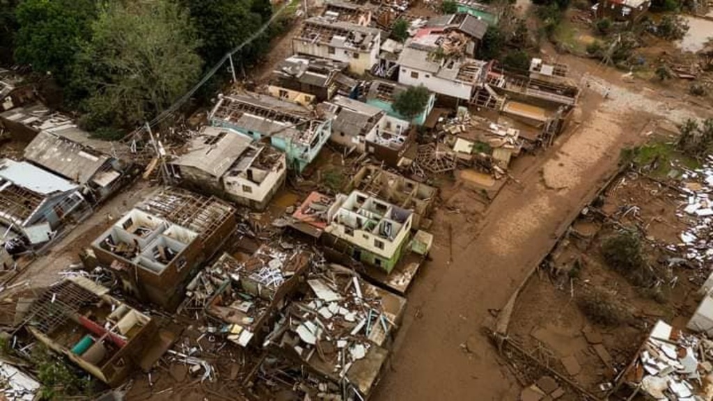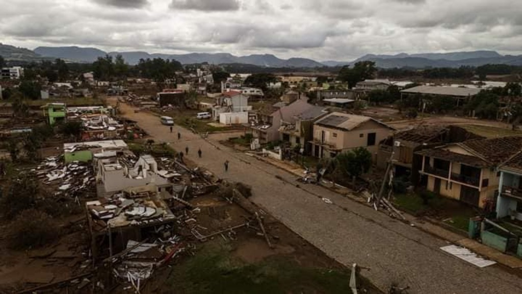 UM CENÁRIO DE GUERRA COMEÇA A APARECER DEPOIS DAS AGUAS BAIXAREM, UMA DAS CIDADES ARRASADAS, ARROIO DO MEIO NO VALE DO TAQUARI.
