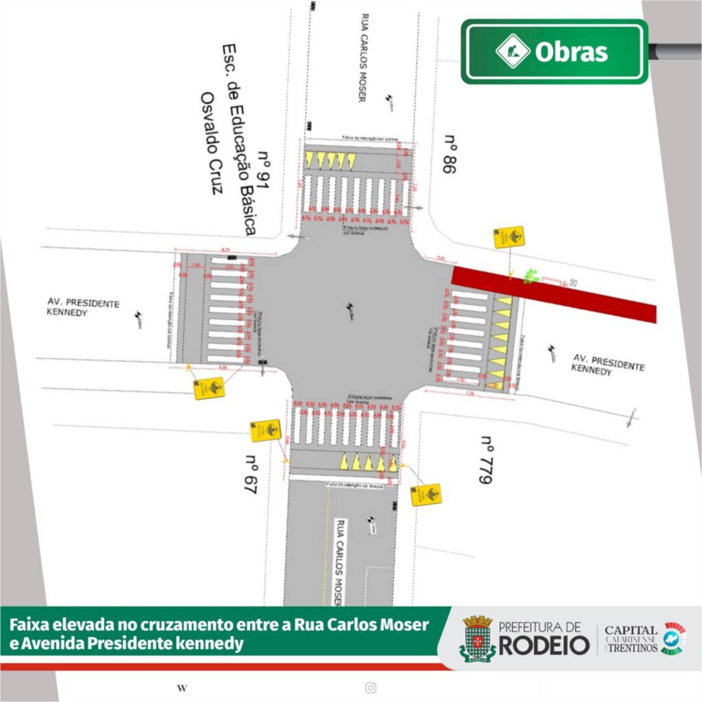 Pavimentação asfáltica da primeira quadra da Rua Carlos Moser e construção da Faixa elevada no cruzamento entre a Rua Carlos Moser e Avenida Presidente kennedy.