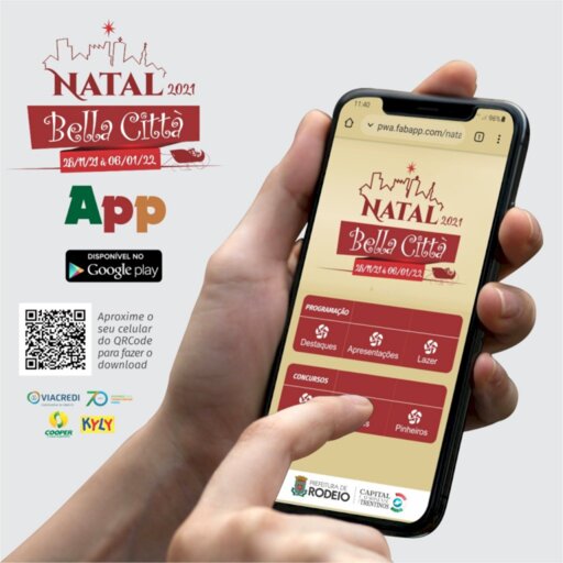 A programação do Natal Bella Città 2021 está disponível em um aplicativo para celulares.