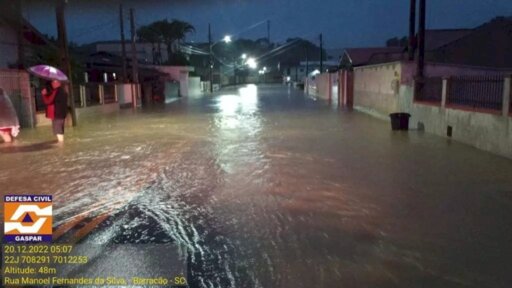 Gaspar está em estado de alerta para alagamentos e deslizamentos devido às fortes chuvas que atingem a região. Nas últimas 6 horas foi registrado um volume de chuva equivalente a 100mm na cidade. Até as 7h desta terça-feira, 20, foram registradas 35 ocorrências, sendo deslizamentos de terra e alagamentos em via pública.