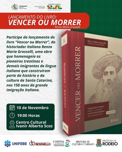 O clássico livro “Vencer ou Morrer”, do historiador italiano Renzo Maria Grosselli, ganha uma versão atualizada, editada pela Editora da UNIFEBE, em parceria com a Associação Beneficente Besenello e o próprio autor.