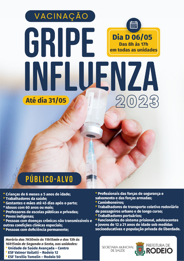 O dia "D" será no dia 6 de maio com atendimento em todas as Unidades de Saúde das 8h às 17h.
