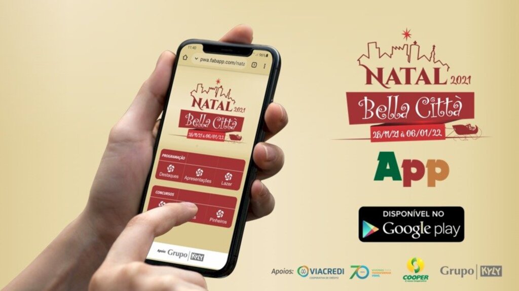 E para integrar ainda mais as pessoas com a programação do Natal Bella Città 2021 foi lançado o aplicativo do Natal Bella Città 2021 na "playstore" onde você pode baixar gratuitamente e ficar por dentro de toda a programação.