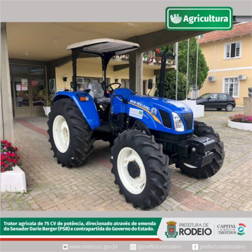 A Secretaria de Agricultura de Rodeio recebeu um trator agrícola de 75 CV de potência, direcionado através de emenda do Senador Dario Berger (PSB) e contrapartida do Governo do Estado.