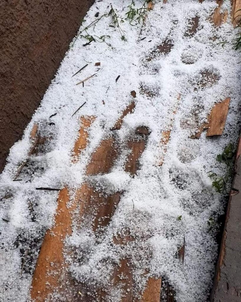 A chuva forte e queda de granizo atingiram São Lourenço do Oeste, no Oeste catarinense, no início da tarde de quarta-feira (10). Segundo a Defesa Civil, duas casas foram destelhadas e uma rua ficou alagada por conta do volume de água. Em outras localidades, as pedras de gelo mudaram a paisagem da região.