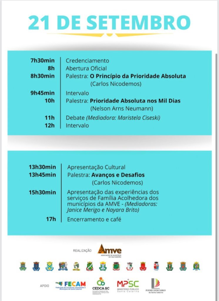 No dia 21 de setembro, Rodeio sediará o 3º Seminário Regional de Família Acolhedora, Magistrados, Promotores de Justiça, Gestores, Defensores Públicos, Assistentes Sociais, Conselheiros Tutelares, toda a rede que faz Parte do Sistema de Garantias de Direitos, Famílias Acolhedoras e comunidade interessada estarão reunidos para debater sobre os desafios, avanços e experiências de serviços de família acolhedora.