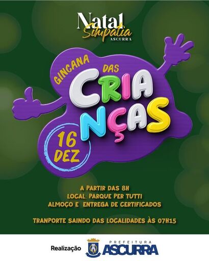A partir das 08h, no Parque Per Tutti, acontece a Gincana das Crianças do Natal Simpatia 2023!