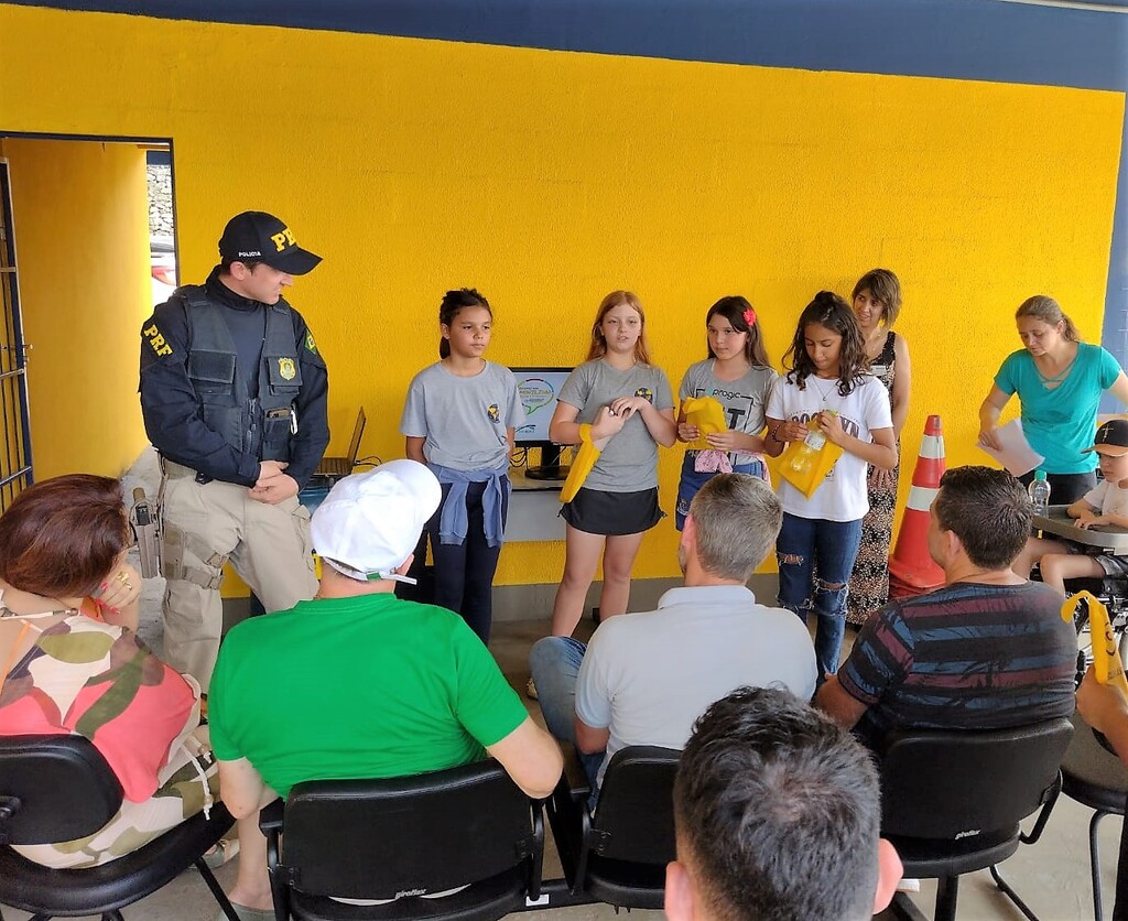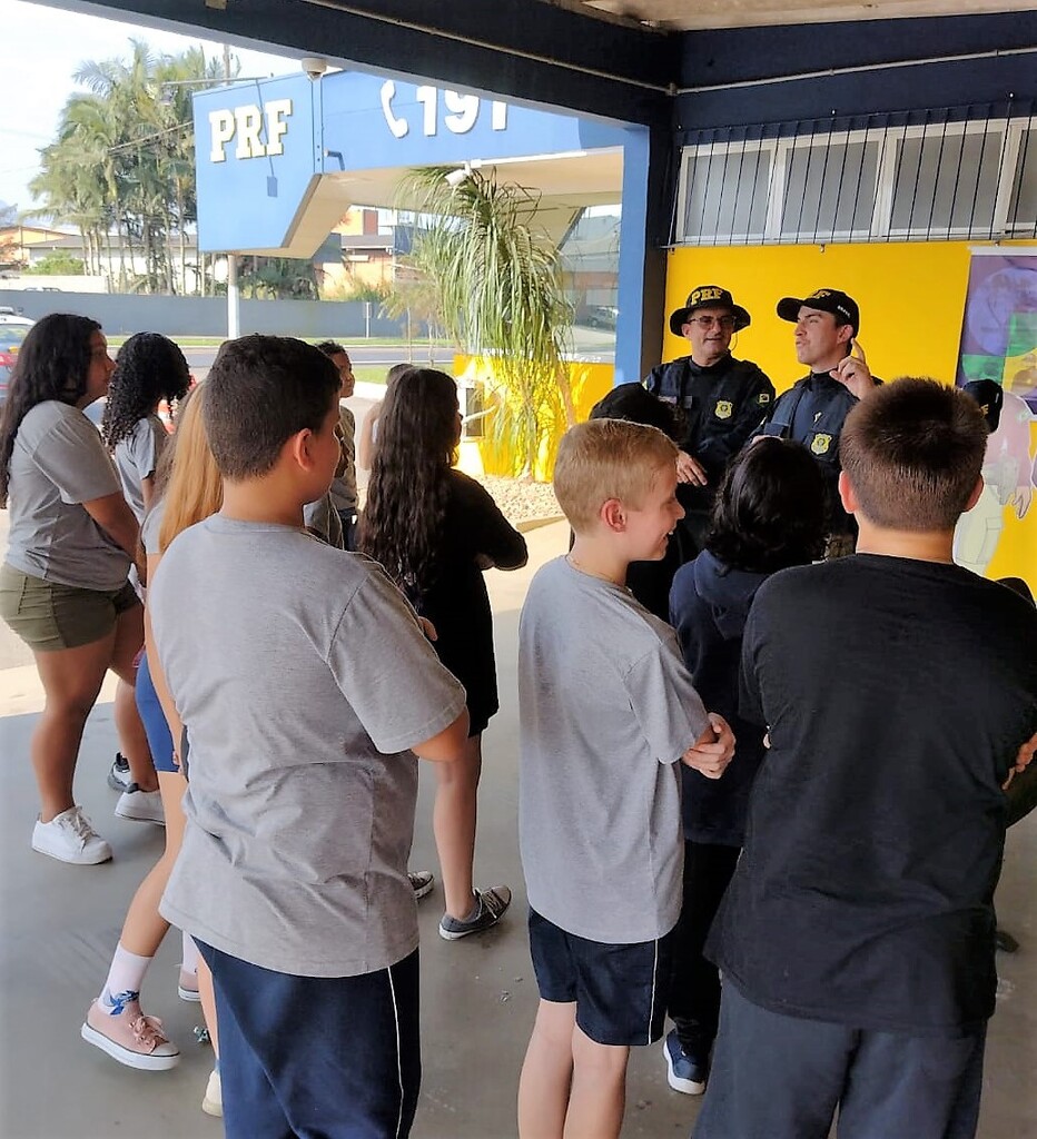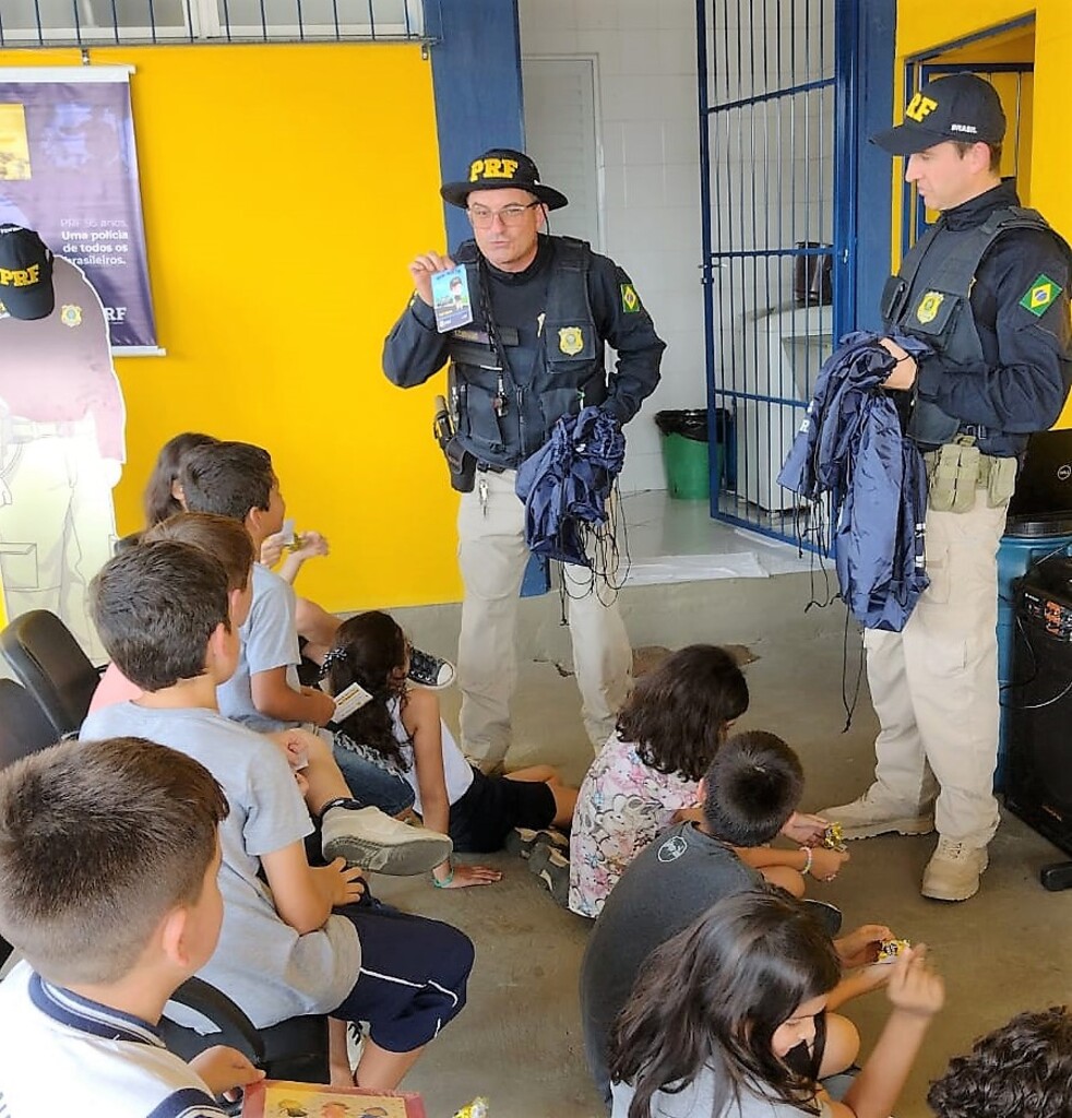 Policiais rodoviários federais realizaram nesta terça-feira (19) duas ações educativas envolvendo alunos do ensino fundamental da região do Médio Vale