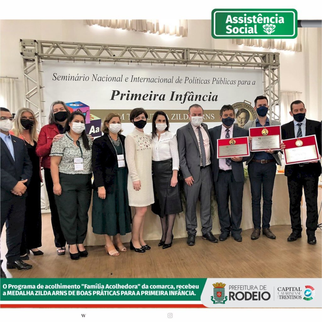 O Serviço Família Acolhedora, dos municípios de Rodeio, Ascurra e Apiúna, recebeu na manhã desta quarta-feira (06/10) a Medalha Zilda Arns, considerada uma das maiores condecorações da política de garantia aos direitos das Crianças e Adolescentes. A premiação foi realizada em Forquilhinha, sul do Estado, durante o Seminário Nacional e Internacional de Politicas Públicas para a Primeira Infância.