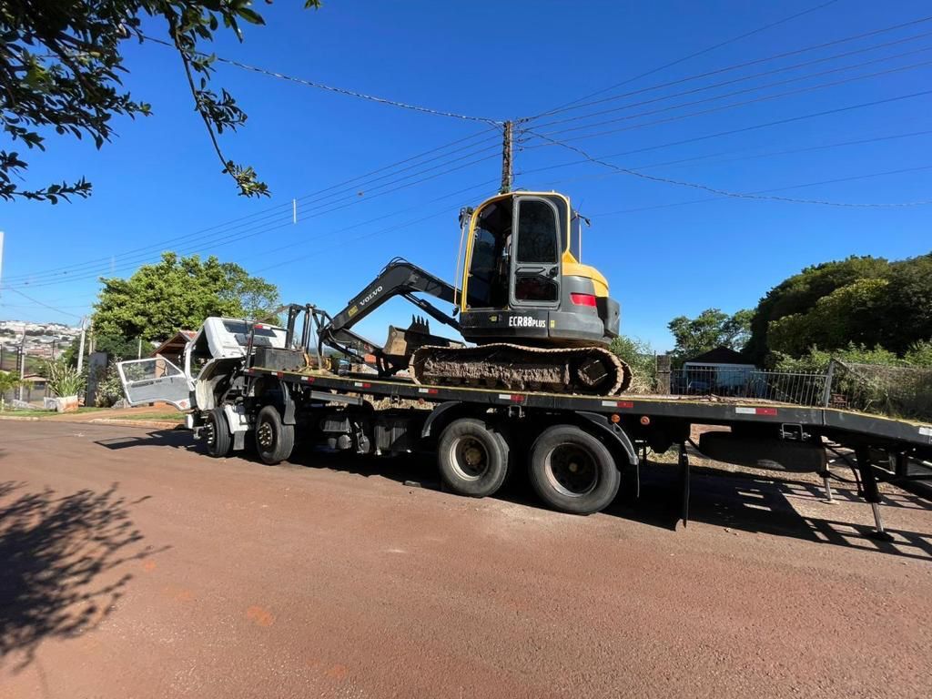 Após investigações, foi identificado o veículo que efetuou o transporte do equipamento - Escavadeira - até a cidade de Maringá, no Paraná. Após incessantes diligências e troca de informações, chegou-se ao endereço onde a máquina estava estacionada.