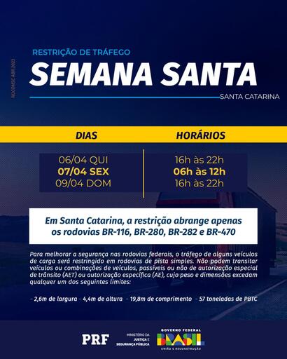 Em Santa catarina, esta restrição vale apenas para as BRs 116, 280, 282 e 470.